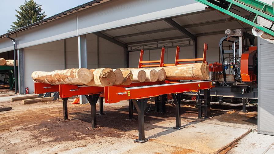 Jednou z nejcennějších částí pilařské linky WB2000 je plošina na kmeny pro for rychlé a bezpečné zakládání kmene na lože. Plošiny Wood-Mizer jsou k dispozici v délkových verzích 3,6 m a 6 m se 2 nebo 3 dopravními řetězy. “Někdy firmy objednají speciální uspořádání dvou plošin, při kterém je jedna umístěna za druhou. Kratší plošina je osazena uvnitř výrobní haly a delší je venku. Venkovní plošina je využita pro uložení kmenů dostačujících pro jednu pracovní směnu a kratší pro zásobu 2-3 kmenů pro okamžité zakládání na lože pily. Je to chytrý způsob jak omezit otevírání a zavírání výrobní haly v zimě a ušetřit nějaké teplo,” vysvětluje Adam Kubiak. Plošina na kmen je také nabízena v nejnovější Heavy-Duty verzi se zvýšenou odolností.